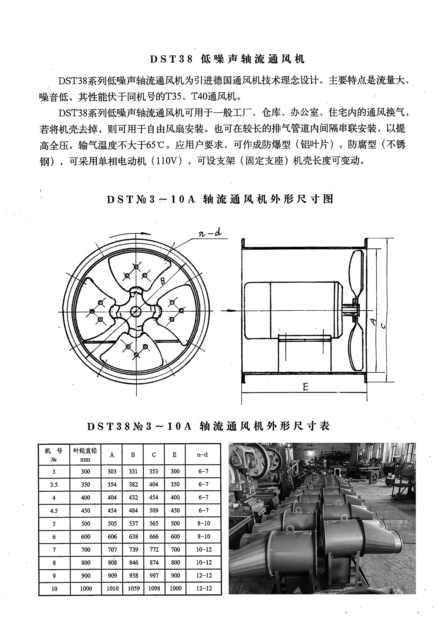 DST38系列低噪声轴流通风机为引进德国通风机技术理念设计。主要特点是流量大、噪音低,其性能伏于同机号的T35、T40通风机。